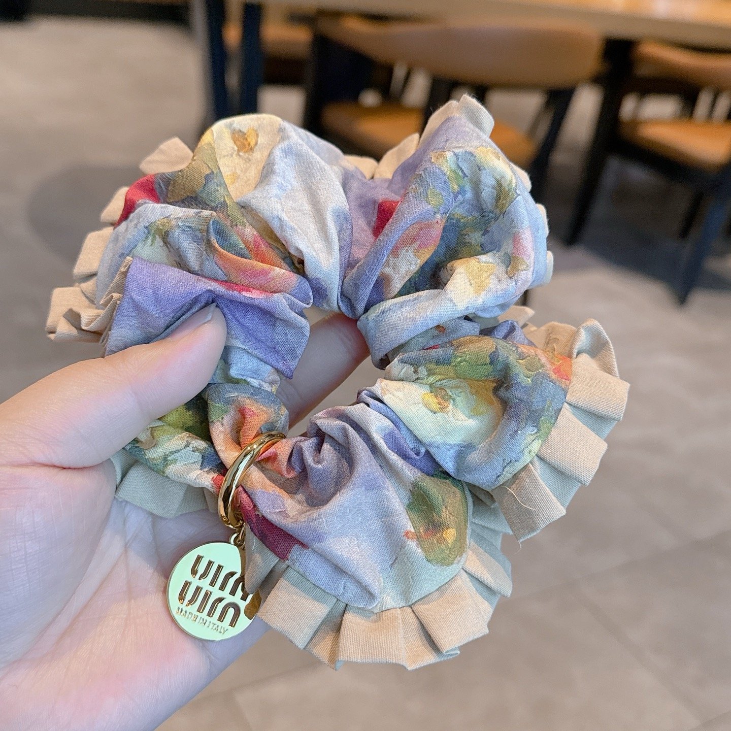 Designed with a luxurious silk blend, this hair tie ensures a soft and gentle grip, minimizing discomfort while keeping hair secure. Its high-quality material not only provides durability but also maintains the vibrant floral patterns for long-lasting appeal.