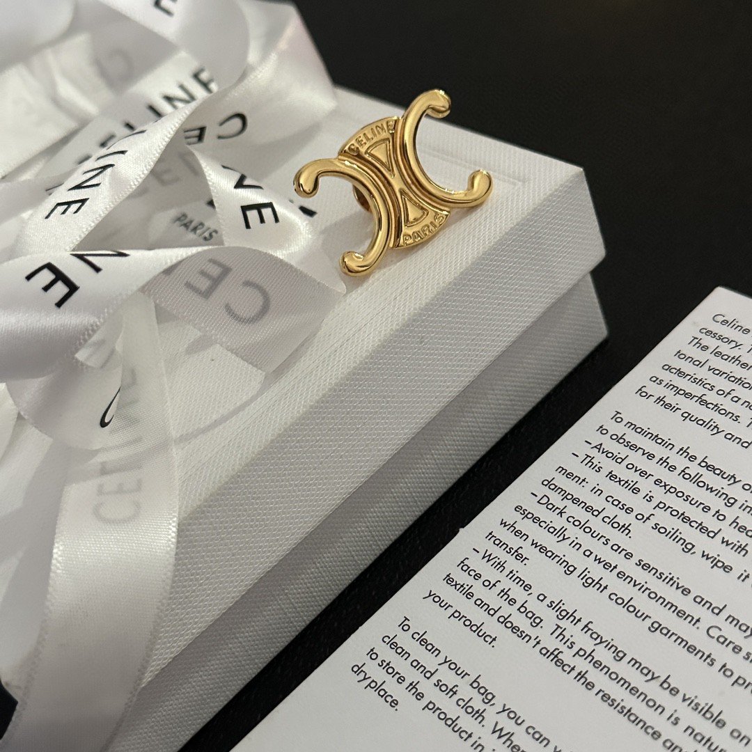 Introducing the New Celine Paris Logo Brooch, a refined piece of luxury that embodies sophistication and timeless charm. Designed with a vintage gold-tone finish and detailed enamel work, this brooch is the ultimate accessory for adding a subtle yet impactful touch to your ensemble.