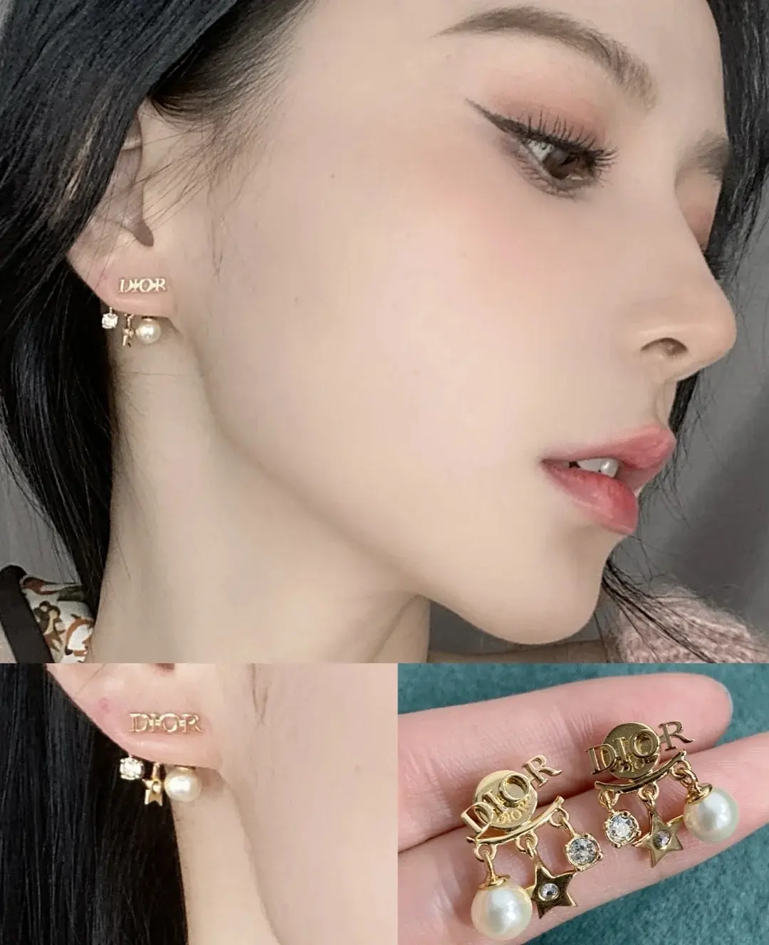 💕 D*or Letter JA Earrings Double Strap Method