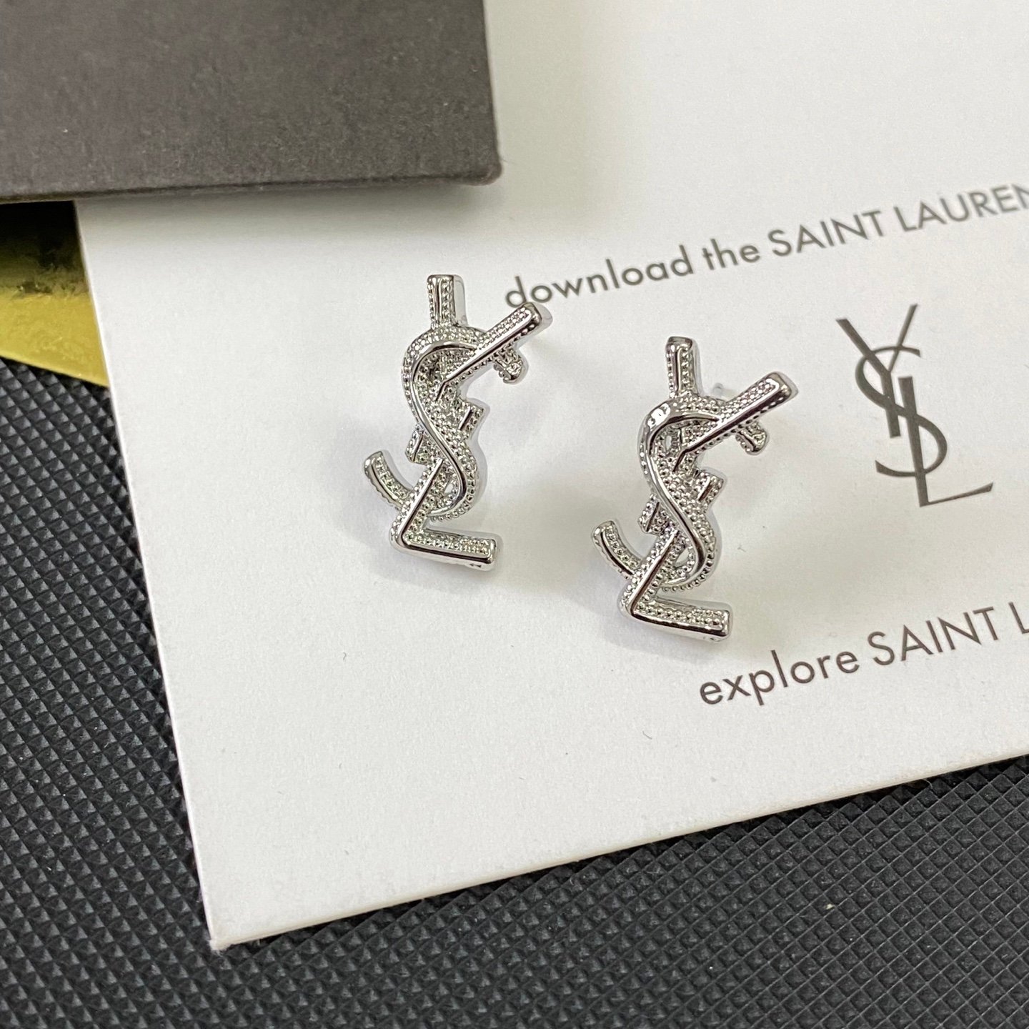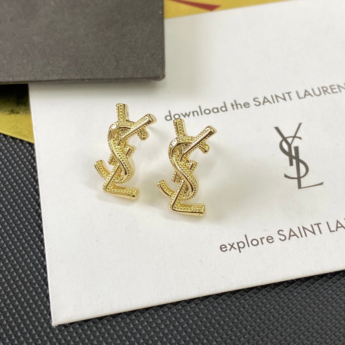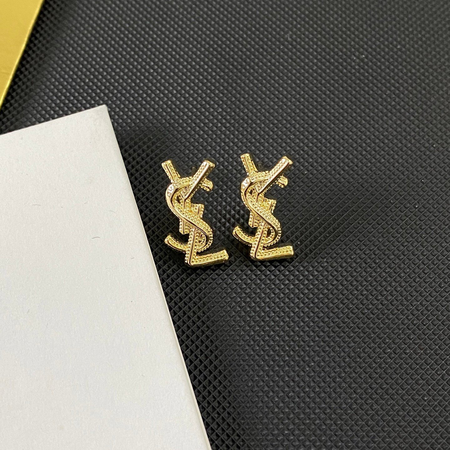 YSL’s new earrings Size 1×1.8CM–Material Copper–Stamped–Gold Plated for Color Retention