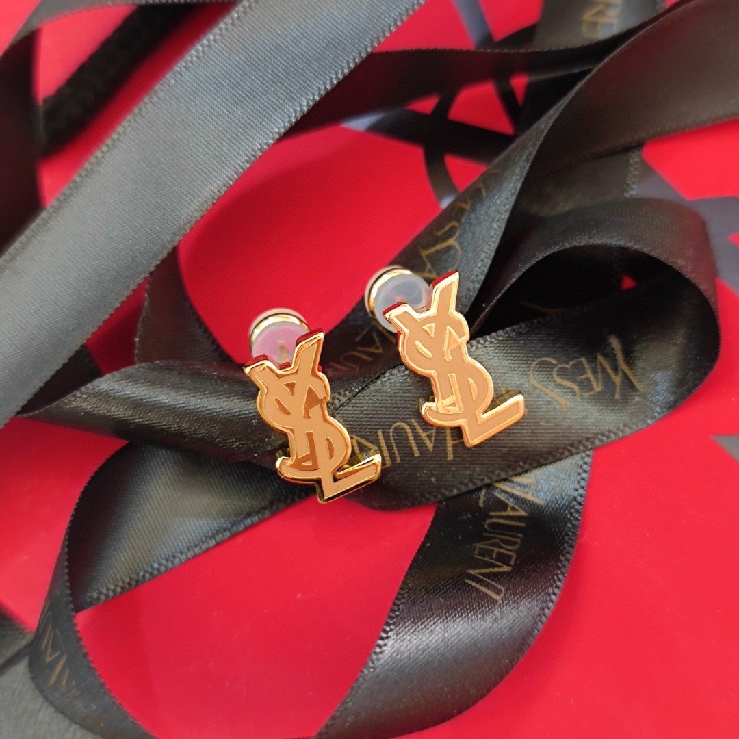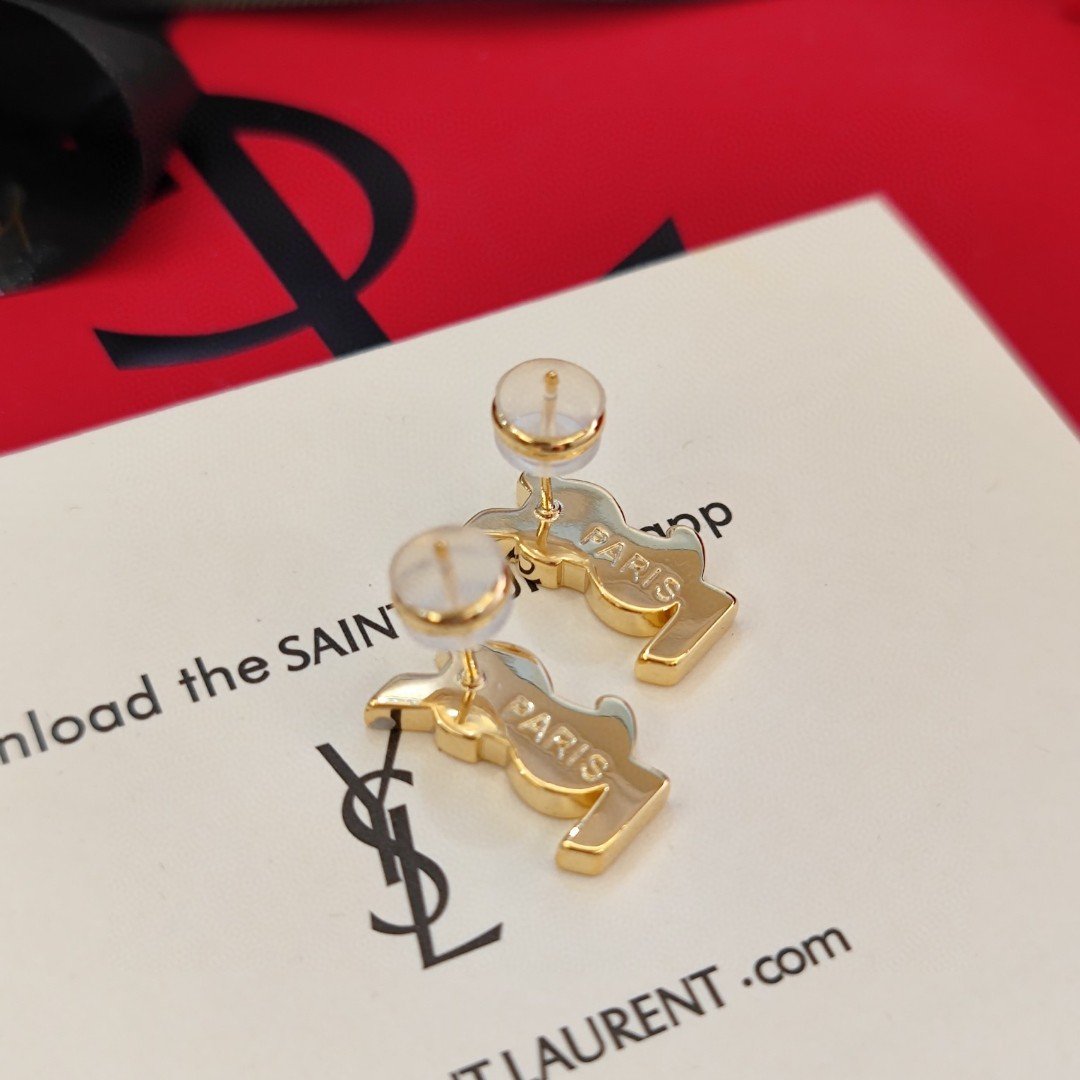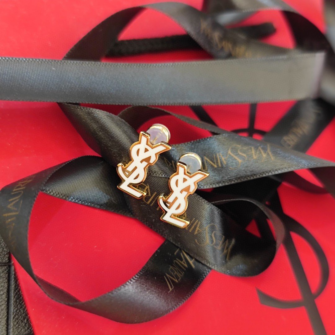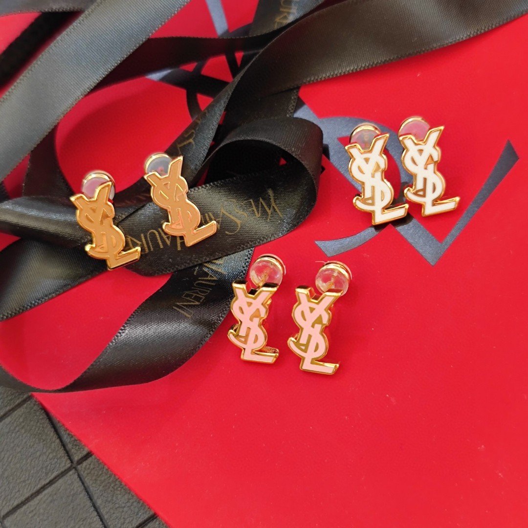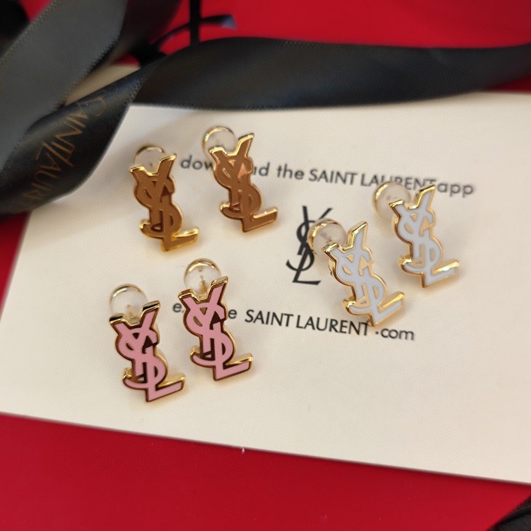 YSL new earrings in white, pink, and coffee colors